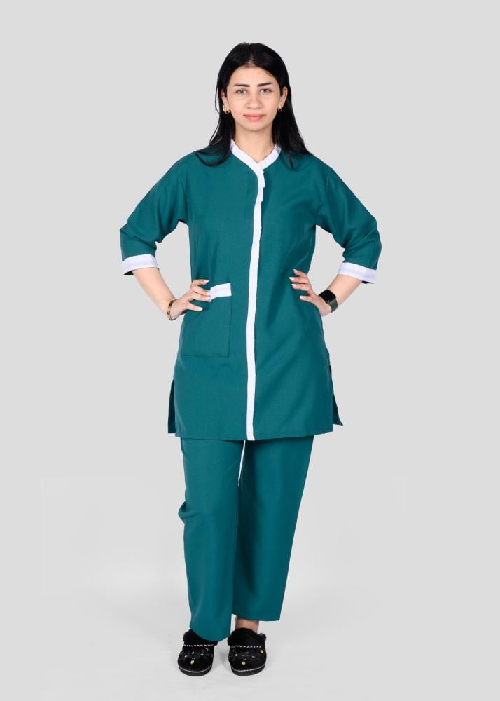 زي عاملات أنيق بتصميم يجمع بين الراحة والمظهر المرتب، مثالي للعاملات في المراكز الطبية، الصالونات، والمحال التجارية و حتى المنزل.