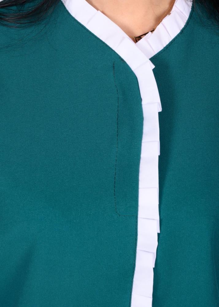 يتميز بتفاصيل بلون متباين على الياقة والأكمام لإطلالة احترافية ومرتبة، مع خامة عملية ومريحة تسهّل الحركة اليومية.
