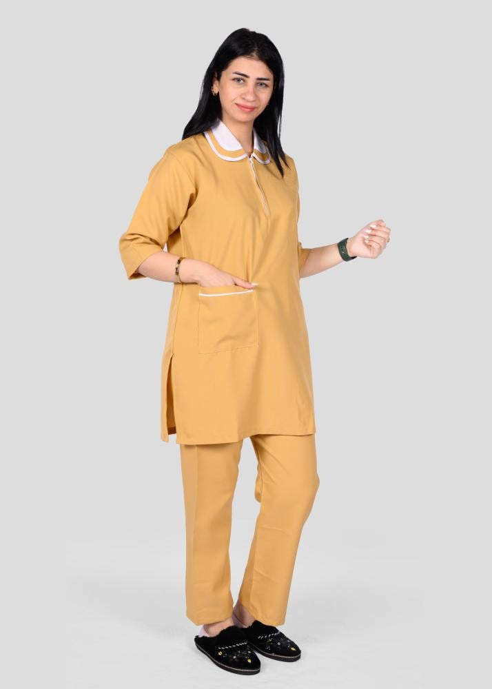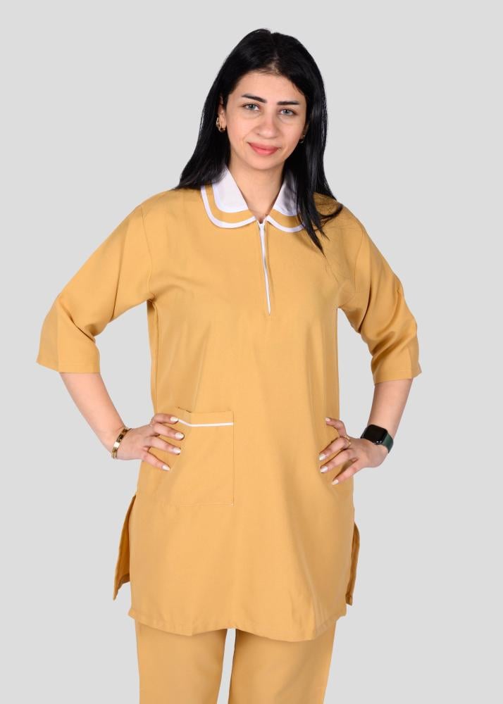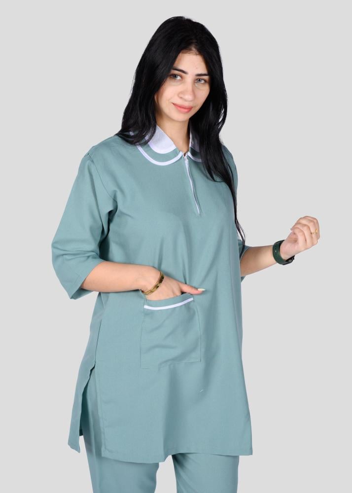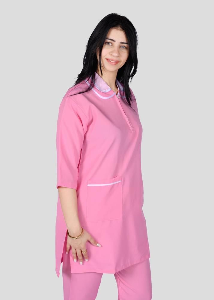 طقم نسائي عملي بتصميم أنيق يجمع بين الراحة والمظهر المرتب في أوقات العمل. مناسب للمراكز الطبية، الصالونات، والبيئات العملية التي تتطلب مظهرًا منسقًا ومريحًا في آن واحد.