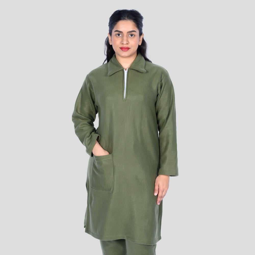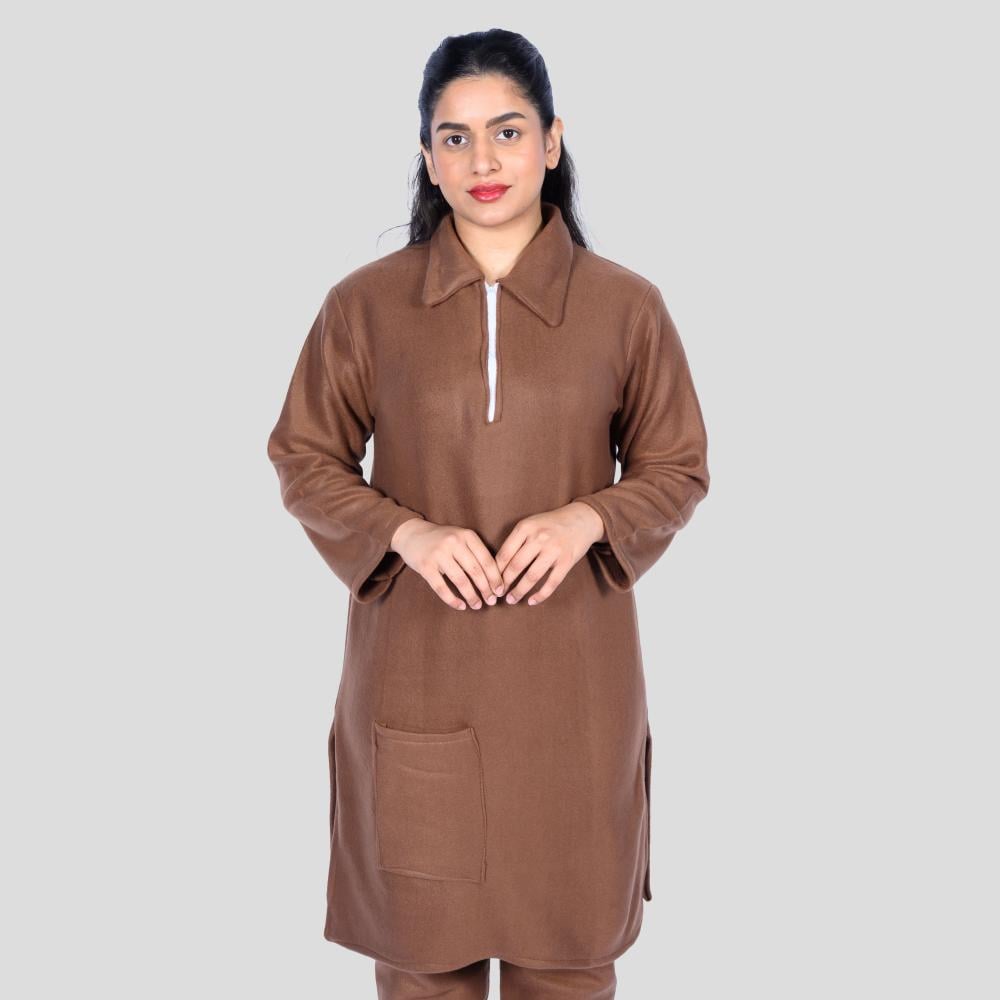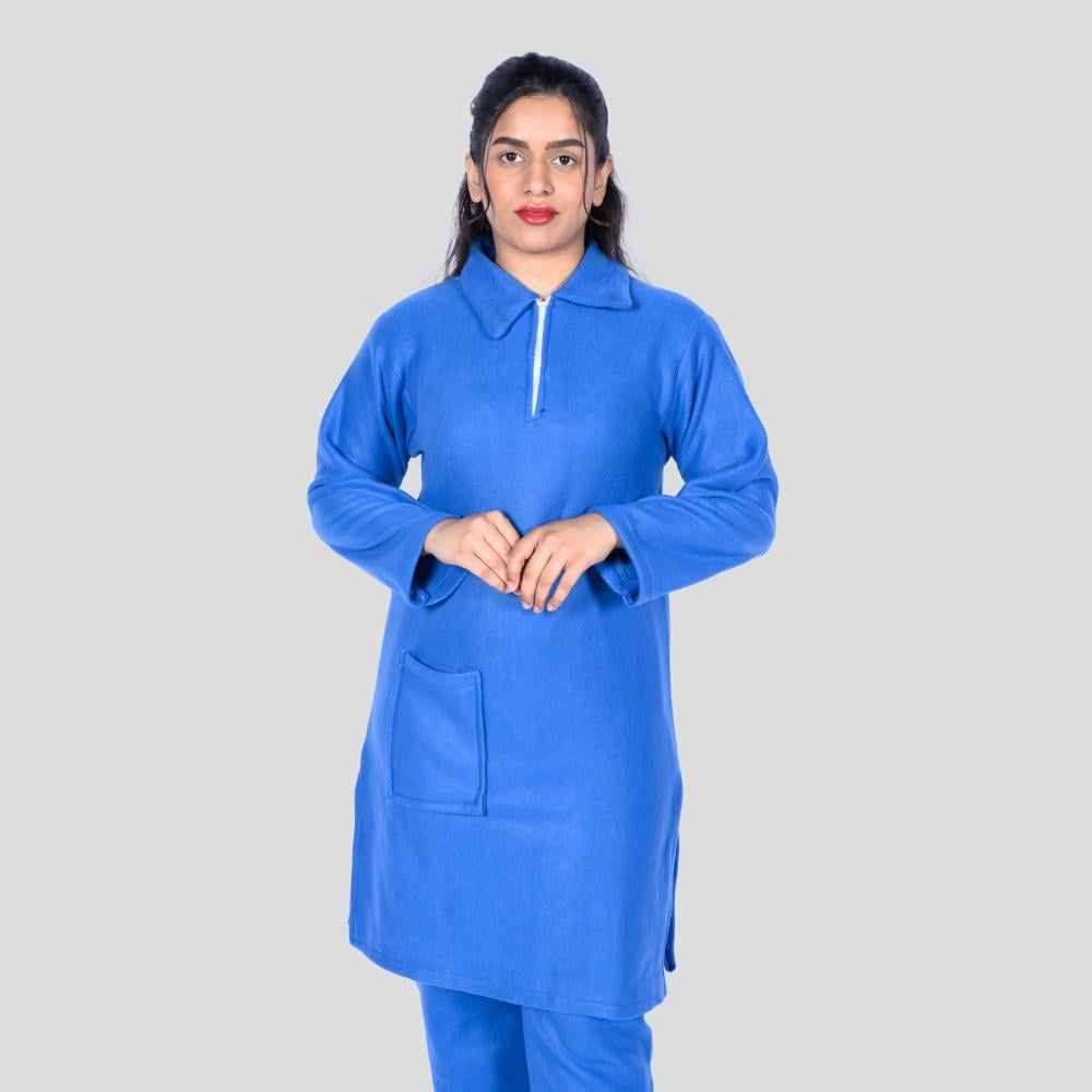 زي شتوي عملي مصمم خصيصًا للعاملات لتوفير الدفء والراحة خلال أيام العمل الباردة. مصنوع من خامة بطانية سميكة ناعمة الملمس تمنح إحساسًا مريحًا وتحتفظ بالحرارة طوال اليوم.