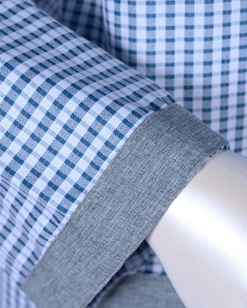 - قميص بنقشة كاروهات أنيقة مع تفاصيل بلون متناسق.