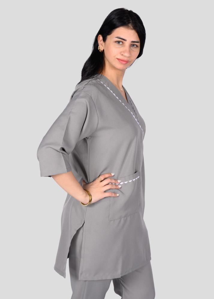 زي عاملات أنيق بتصميم يجمع بين الراحة والمظهر المرتب، مثالي للعاملات في المراكز الطبية، الصالونات، والمحال التجارية و حتى المنزل.