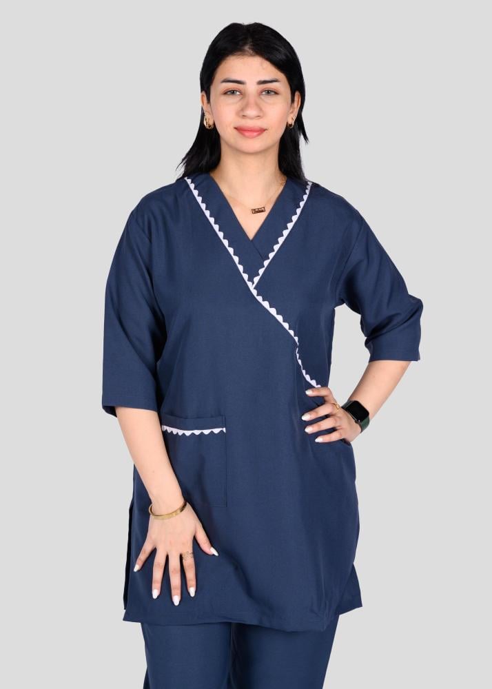 زي عاملات أنيق بتصميم يجمع بين الراحة والمظهر المرتب، مثالي للعاملات في المراكز الطبية، الصالونات، والمحال التجارية و حتى المنزل.