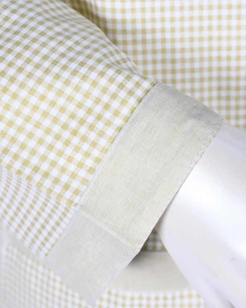 - قميص بنقشة كاروهات أنيقة مع تفاصيل بلون متناسق.