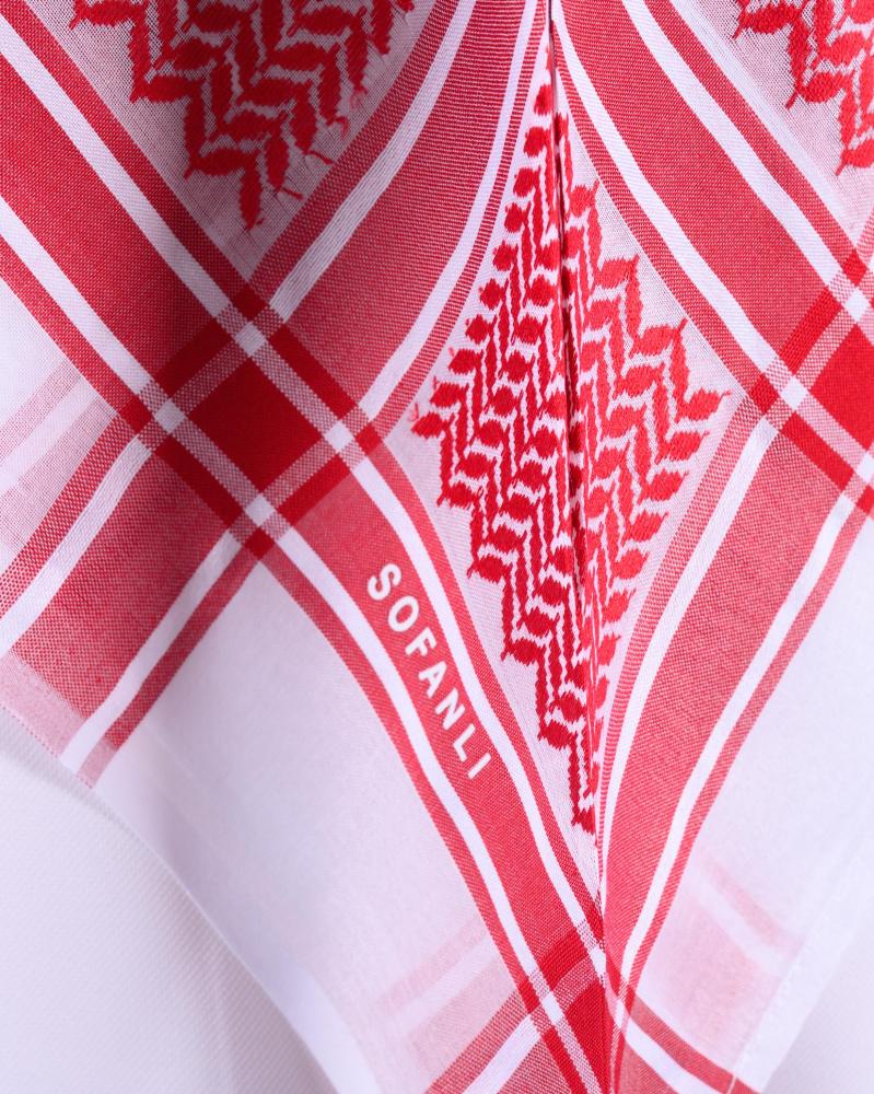 شماغ سوفانلي الرجالي يجمع بين التصميم الفاخر والراحة العالية. يتميز بتطابق دقيق في الأطراف يمنحك مظهرًا أنيقًا ومتناسقًا، وبتصميم مستوحى من الطابع العربي مع أنماط خاصة تضيف لمسة فريدة.