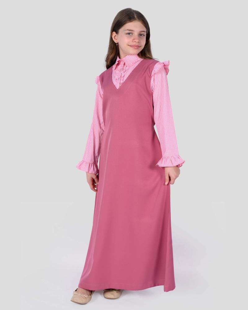 مريول مدرسي للبنات بتصميم عملي ومريح، مصنوع من خليط متين من البوليستر والقطن يمنح ملمسًا ناعمًا وثباتًا في اللون. يتميز بقصة توفر سهولة في الحركة وأكتاف مريحة للاستخدام اليومي.