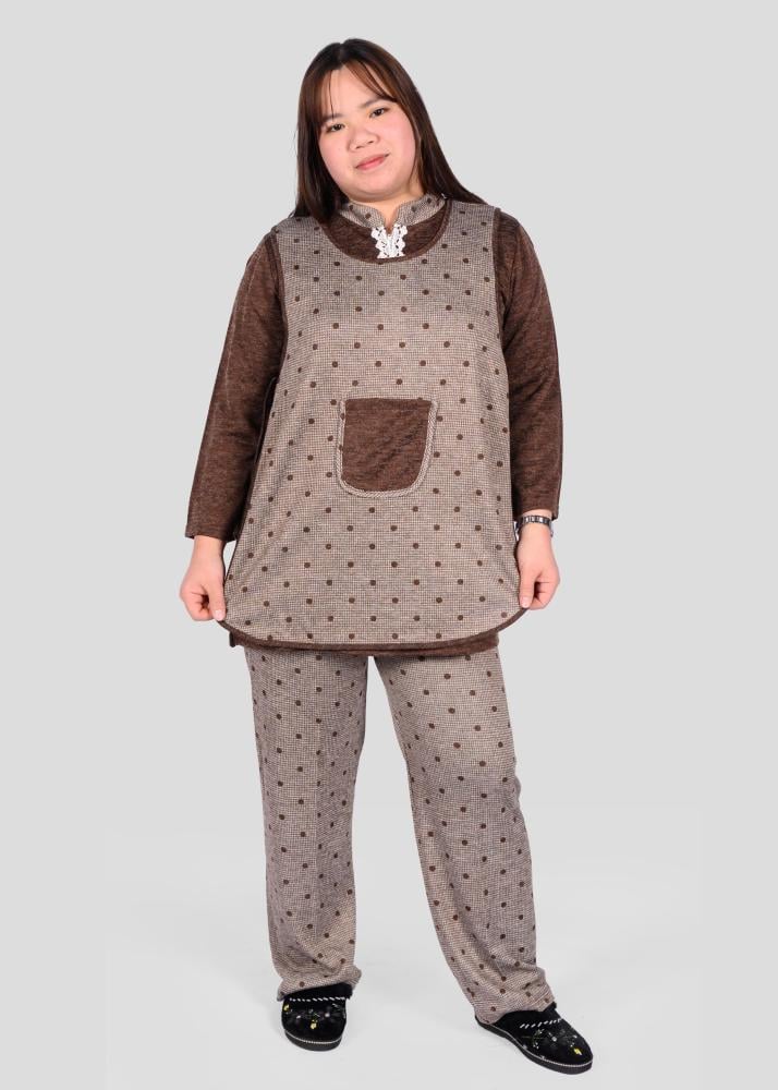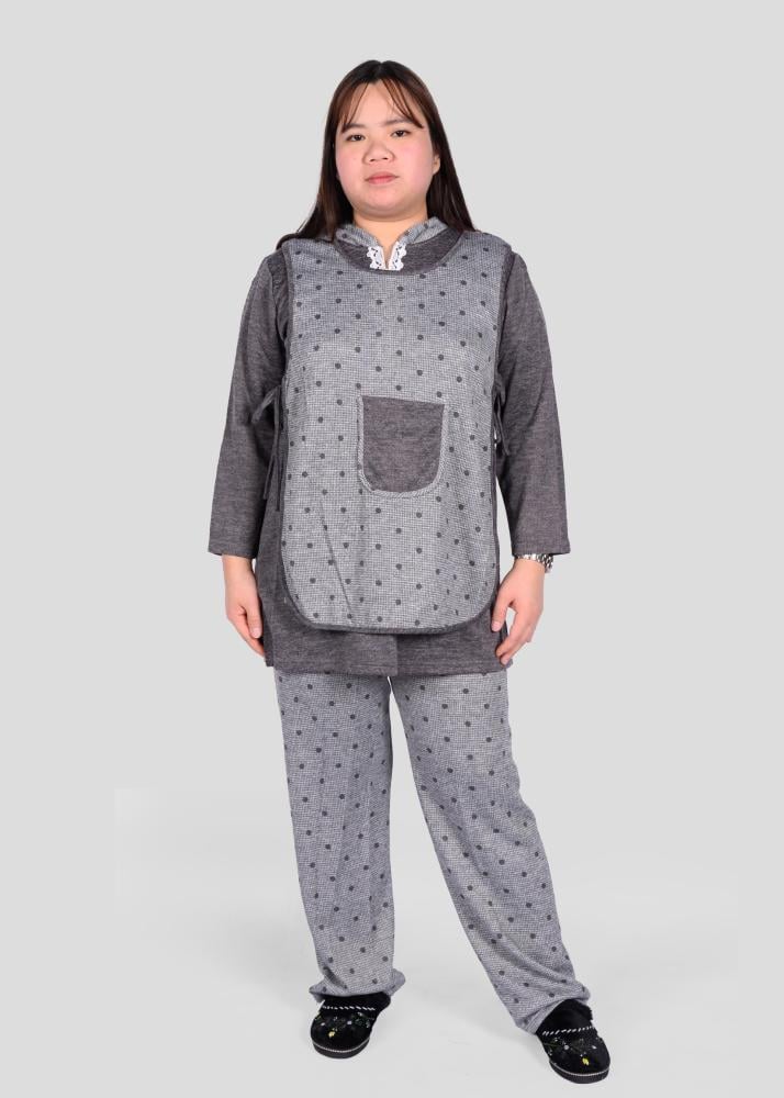 زي موحد شتوي ودافئ من 3 قطع، بتصميم بسيط وعملي، يتميز ببلوزة طويلة ذات قصة مريحة وأكمام واسعة مزودة بجيوب أمامية كبيرة لسهولة الاستخدام، وبنطال سادة واسع. مناسب كزي موحد للعمل في الأماكن المغلقة التي تتطلب الدفء والراحة القصوى.