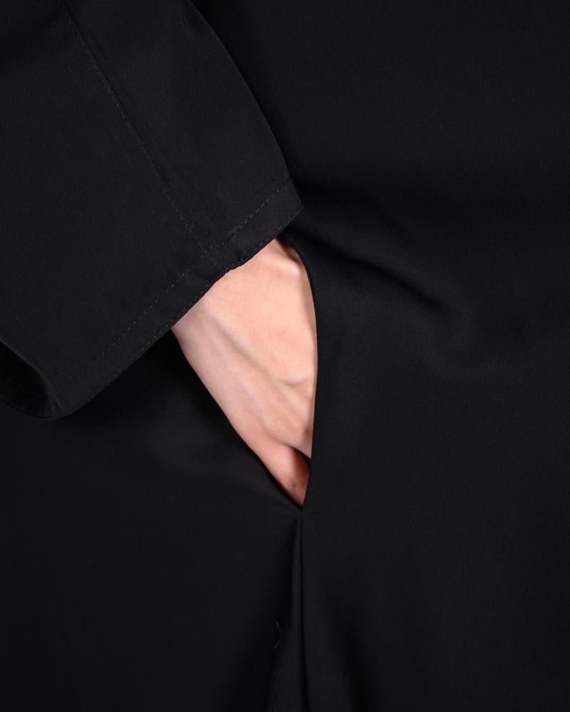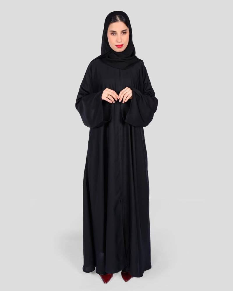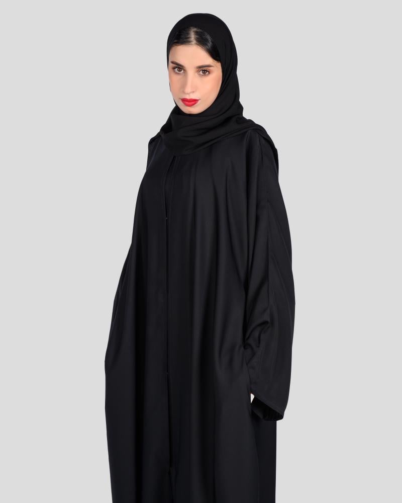 عباءة نسائية بتصميم عملي وأنيق باللون الأسود. تتميز هذه العباءة بقصة واسعة ومريحة، مع ازرار أمامية لسهولة الارتداء. الأكمام مصممة بقصة واسعة ومريحة، كما تحتوي العباءة على جيوب جانبية مخفية لتعزيز جانبها العملي. هذه القطعة مصممة لتكون خيارك الأمثل للاستخدام اليومي، حيث تجمع بين الراحة المطلقة والأناقة الكلاسيكية البسيطة.