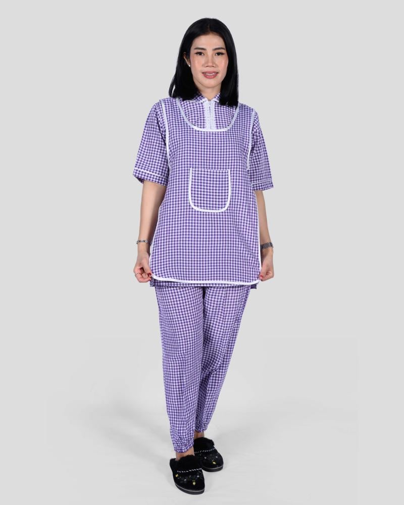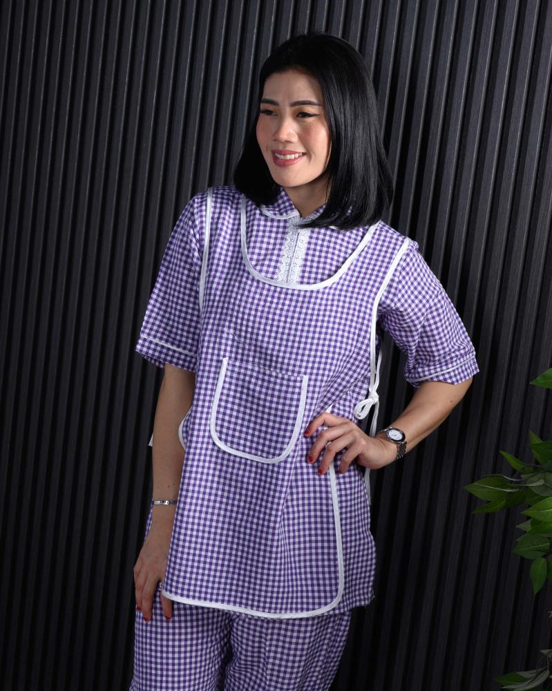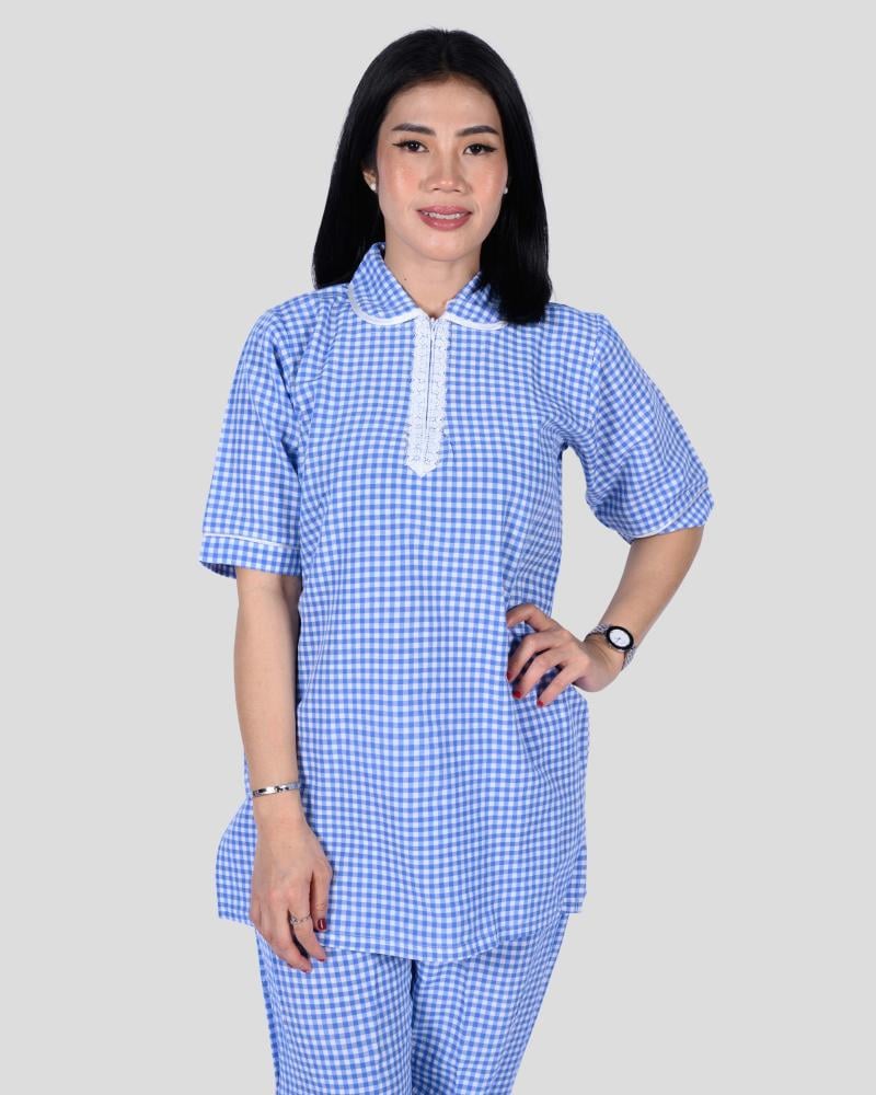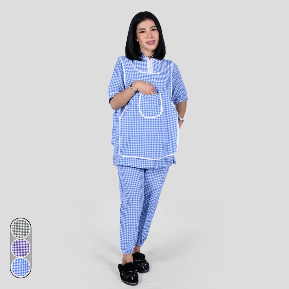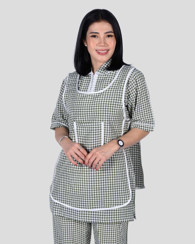 زي عاملة محتشم كاروهات يتكون من 3 قطع يمزج بين الأناقة والراحة.