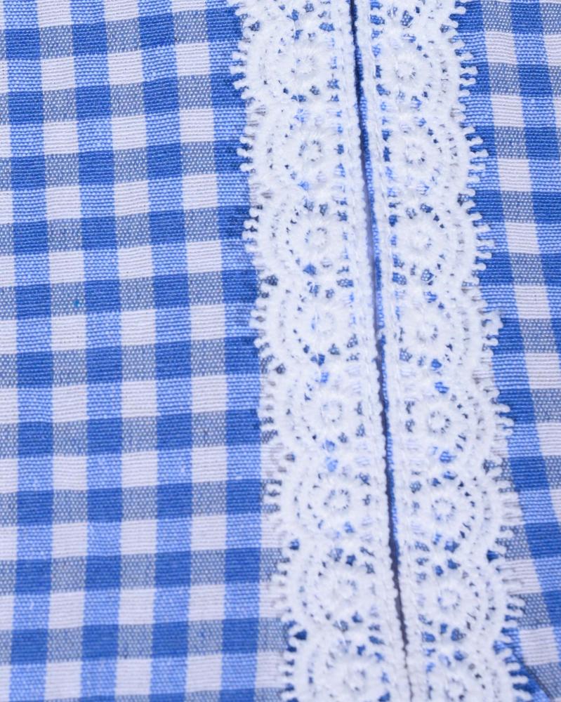 بأكمام قصيرة مصمم بطريقة تحافظ على الحشمة، ويزينها تفاصيل دانتيل ناعمة لتضفي لمسة أنثوية أنيقة.