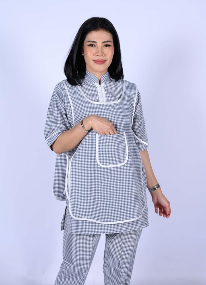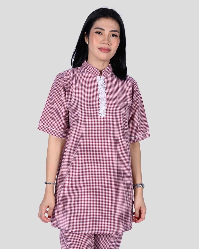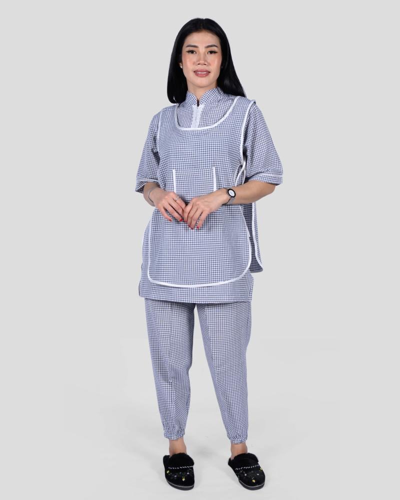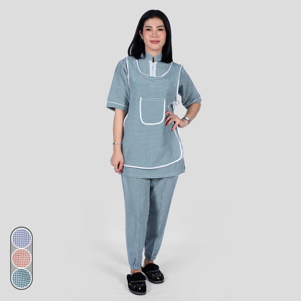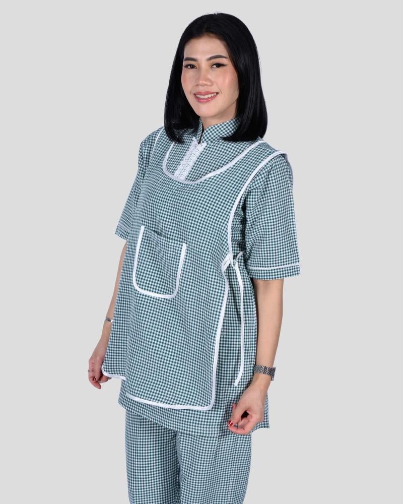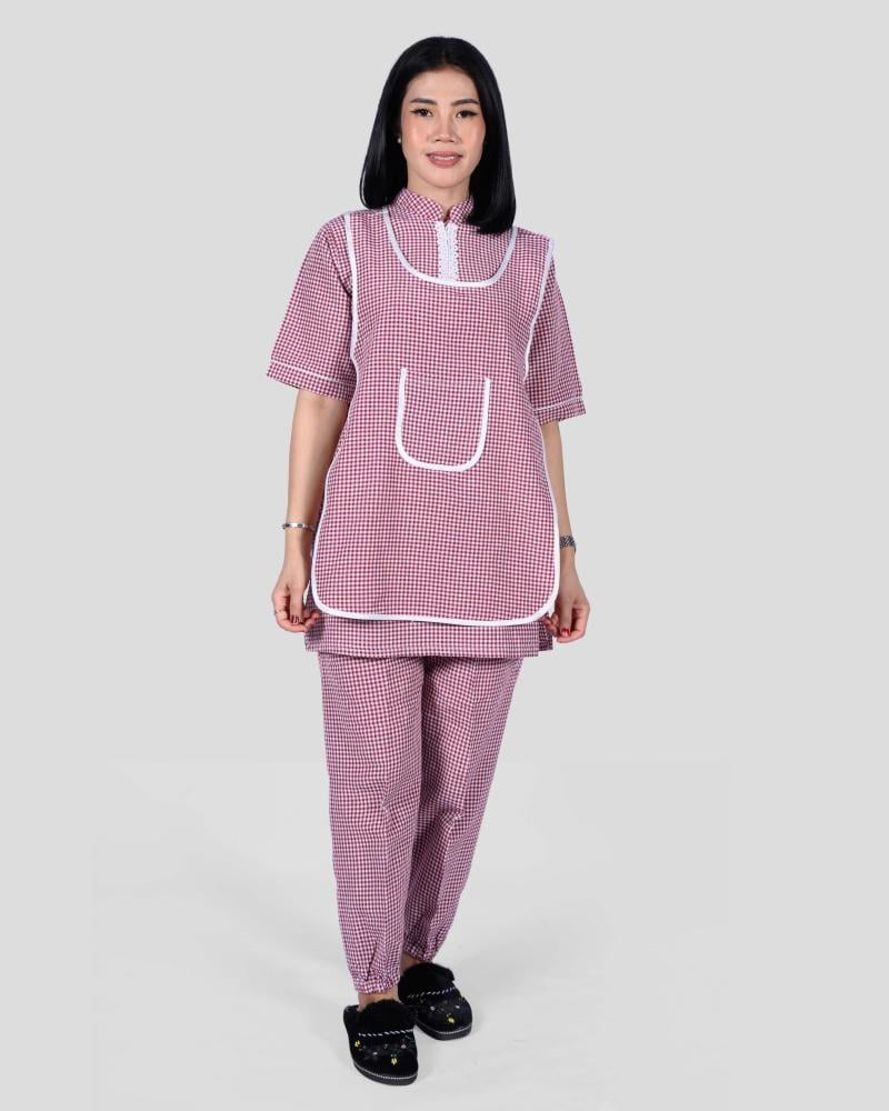 زي عاملة محتشم كاروهات يتكون من 3 قطع يمزج بين الأناقة والراحة.